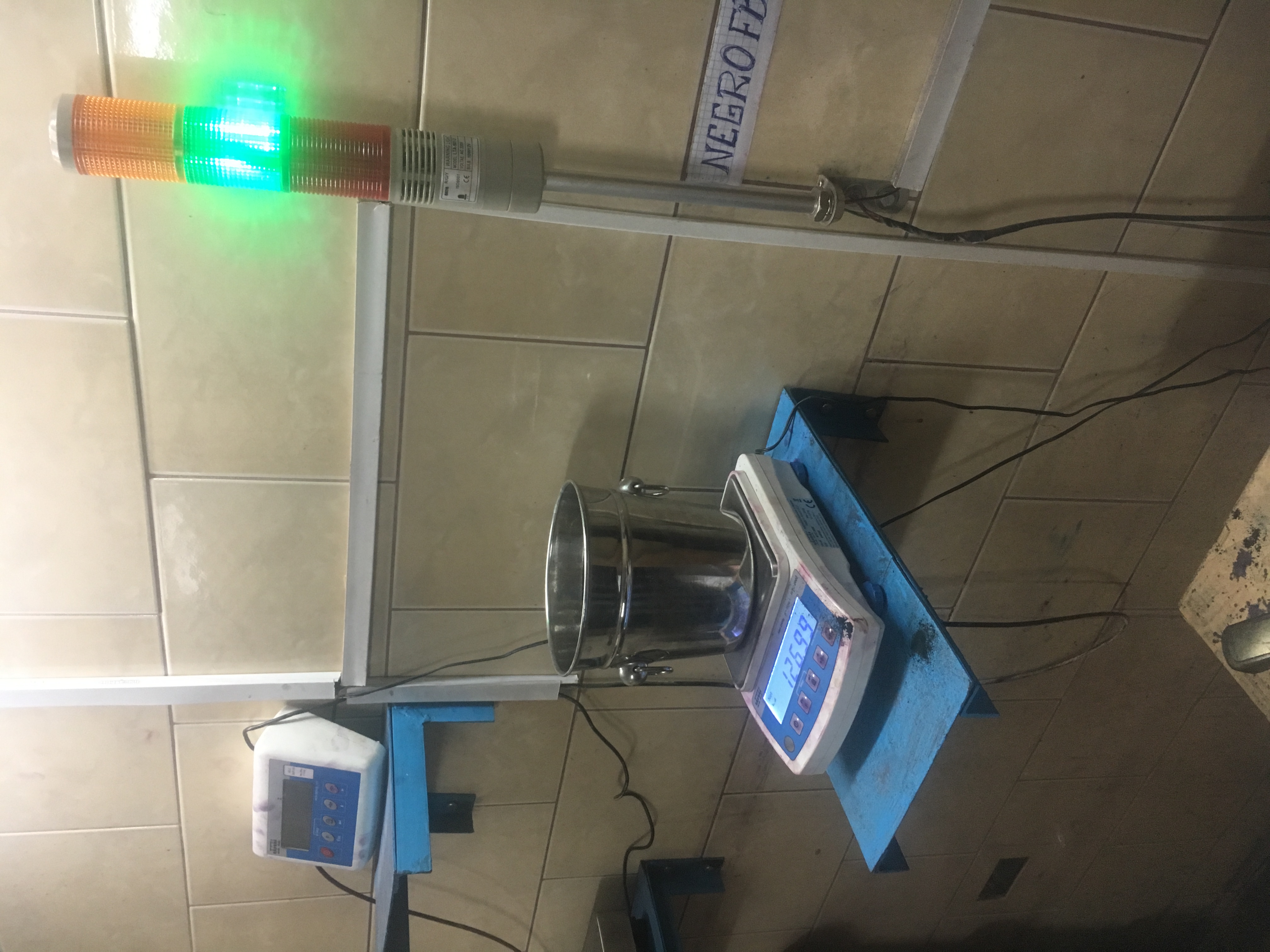 Este sistema permite conectarnos a una balanza y transmitir los datos hacia una computadora la misma que controla la cantidad exacta en peso de insumo a pesar. Si el usuario se excede en el peso, el sistema emite una señal roja a la valiza lo cual es visible al usuario, si el peso enviado al sistema es menor la valiza envia la señal naranja y si el usuario envia peso correcto al sistema se encenderá la luz verde de la valiza y al mismo tiempo se registrara en el sistema.